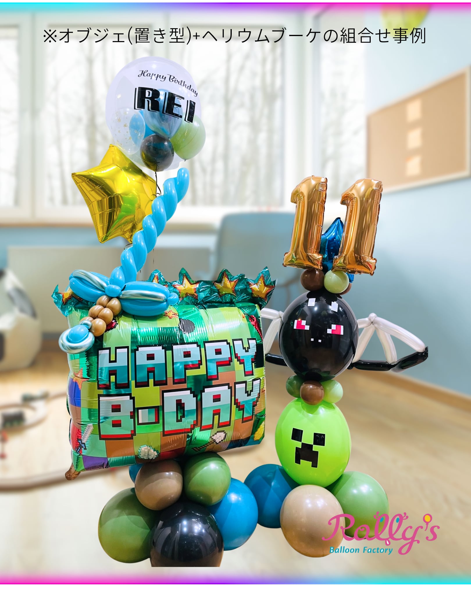 レーシングカーやゲームコントローラー、宇宙飛行士など、存在感のあるシェイプでパーティー空間を演出。